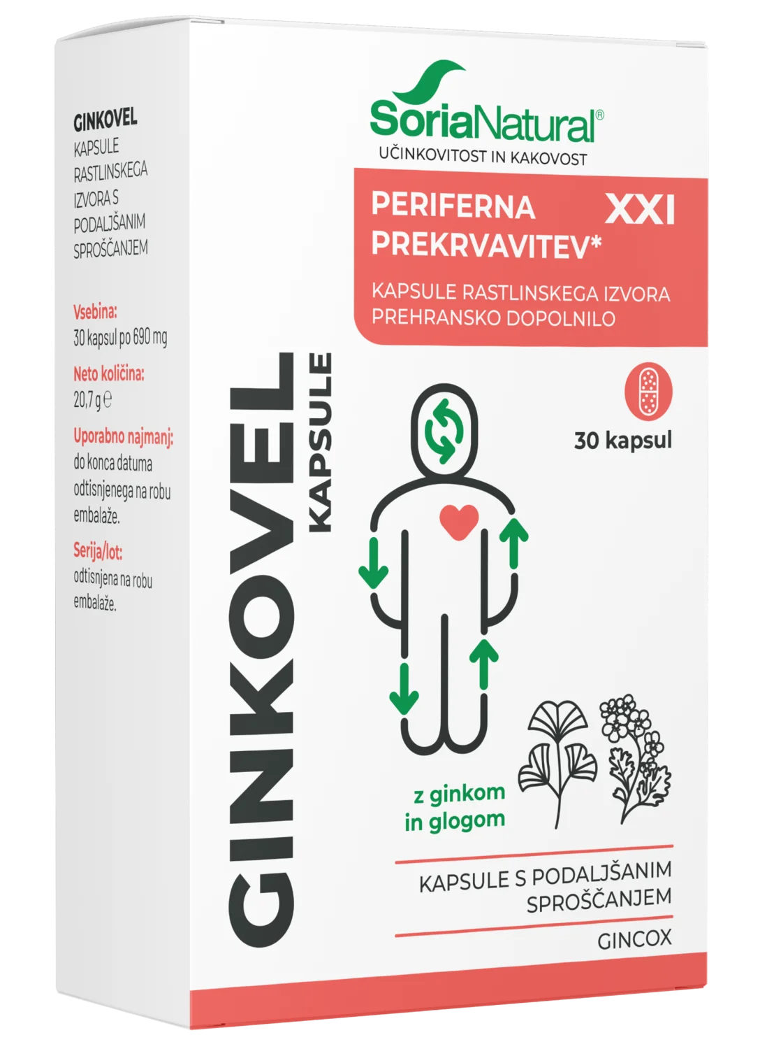 Soria Natural Ginkovel XXI kapsule s podaljšanim sproščanjem so prehransko dopolnilo, ki vsebuje izvleček ginka in gloga. Podaljšano sproščanje omogoča manj pogosto jemanje, saj se aktivne snovi sproščajo postopoma.