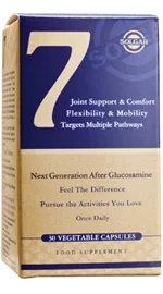 Solgar 7 kapsule so prehransko dopolnilo z inovativno formulacijo 7 bioaktivnih sestavin, namenjeno podpori zdravja sklepov, gibljivosti in normalnega delovanja hrustanca. Združujejo vitamin C, kolagen in izbrane rastlinske izvlečke, ki skupaj prispevajo k ohranjanju normalne funkcije sklepov ter gibljivosti pri fizičnih obremenitvah ali vsakodnevni aktivnosti. Kapsule ne vsebujejo glutena, kvasa, mlečnih sestavin ter so brez umetnih barvil in arom.