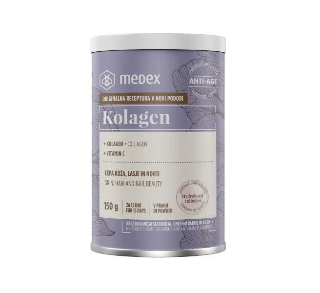 S kolagenom v prahu od Medexa boste zaužili hidroliziran kolagen, ki vsebuje beljakovino kolagena, podobno tisti v človeškem telesu. Izdelku je dodan tudi vitamin C.