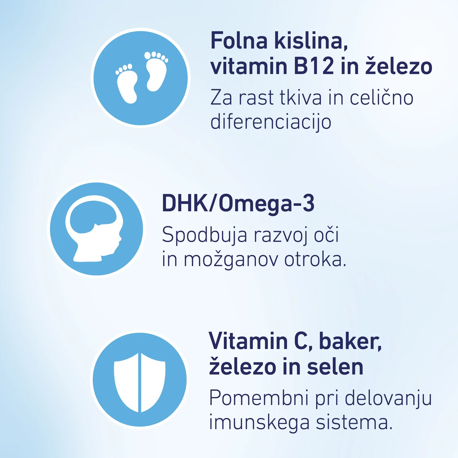 Vitamini B, C, D, A, E in minerali (železo, baker, selen, jod, magnezij, cink) prispevajo k normalnemu delovanju imunskega sistema, presnovi energije, psihološkemu delovanju in zaščiti celic pred oksidativnim stresom.