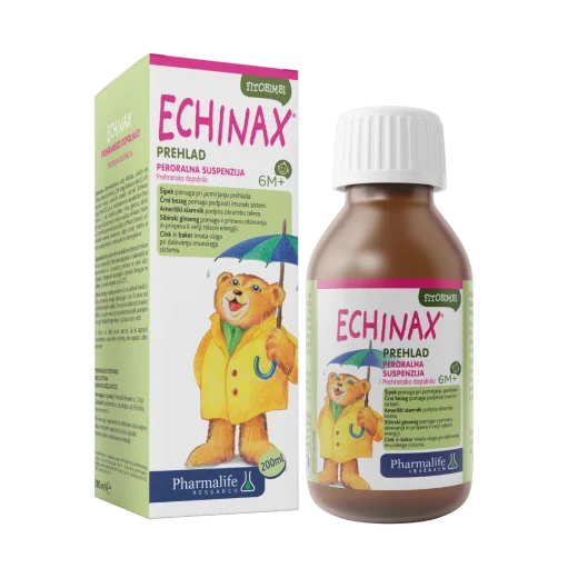 Fitobimbi Echinax je tekoče prehransko dopolnilo za otroke, zasnovano kot podpora imunskemu sistemu v obdobjih sezonskih obremenitev. Vsebuje kombinacijo rastlinskih izvlečkov, naravni vitamin C iz šipka ter ključna minerala, cink in baker. Namenjen je uporabi v času prehladov, poslabšane odpornosti ali povečane utrujenosti. Zaradi dodanega jabolčnega soka je prijetnega okusa in primeren za otroke od 6. meseca starosti dalje.