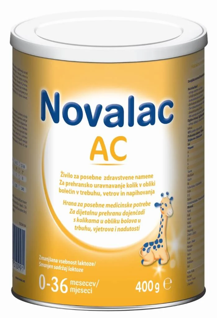 Mleko Novalac AC je posebej prilagojeno za dojenčke s kolikami, saj ima dodane prebiotike, dobre mlečnokislinske bakterije in zmanjšano vsebnost laktoze. To omeji fermentacijo v črevesju oziroma pojav bolečin v trebuhu, vetrov in napihovanja. Namenjeno je dojenčkom in majhnim otrokom, ki pogosto in neutolažljivo jokajo. Za dojenčke od rojstva do 6. meseca starosti se uporablja kot samostojna hrana, če jih mamice ne dojijo, kot del raznovrstne prehrane pa za otroke od 6. meseca do 3. leta starosti.