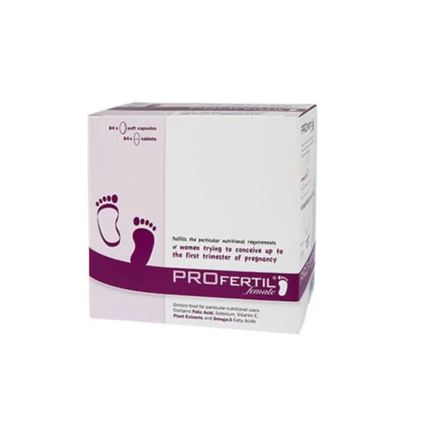 PROfertil Female je prehransko dopolnilo, namenjeno ženskam v obdobju pred zanositvijo in na začetku nosečnosti. Vsebuje kombinacijo izbranih vitaminov, mineralov, rastlinskih izvlečkov, koencima Q10 ter omega-3 maščobnih kislin. Sestava je prilagojena posebnim prehranskim potrebam v času načrtovanja nosečnosti in zgodnje nosečnosti ter zagotavlja ustrezno preskrbo s hranili.