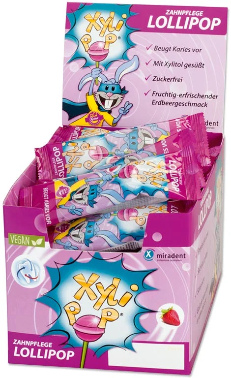 Xylipop lizike za preventivo in zobno nego z okusom jagode so osvežilne lizike, ki prispevajo k zdravju zob, saj so sladkane s ksilitolom, ki pomaga ohranjati mineralizacijo zob in preprečuje nastanek kariesa. Poleg tega vsebujejo kalcijev laktat, ki krepi zobno sklenino. Te lizike so brez sladkorja, glutena, laktoze in aspartama, ter nudijo prijeten sadni okus. Primerne so za tiste, ki želijo uživati v sladkarijah brez sladkorja, ob tem pa skrbijo za zdravje svojih zob.