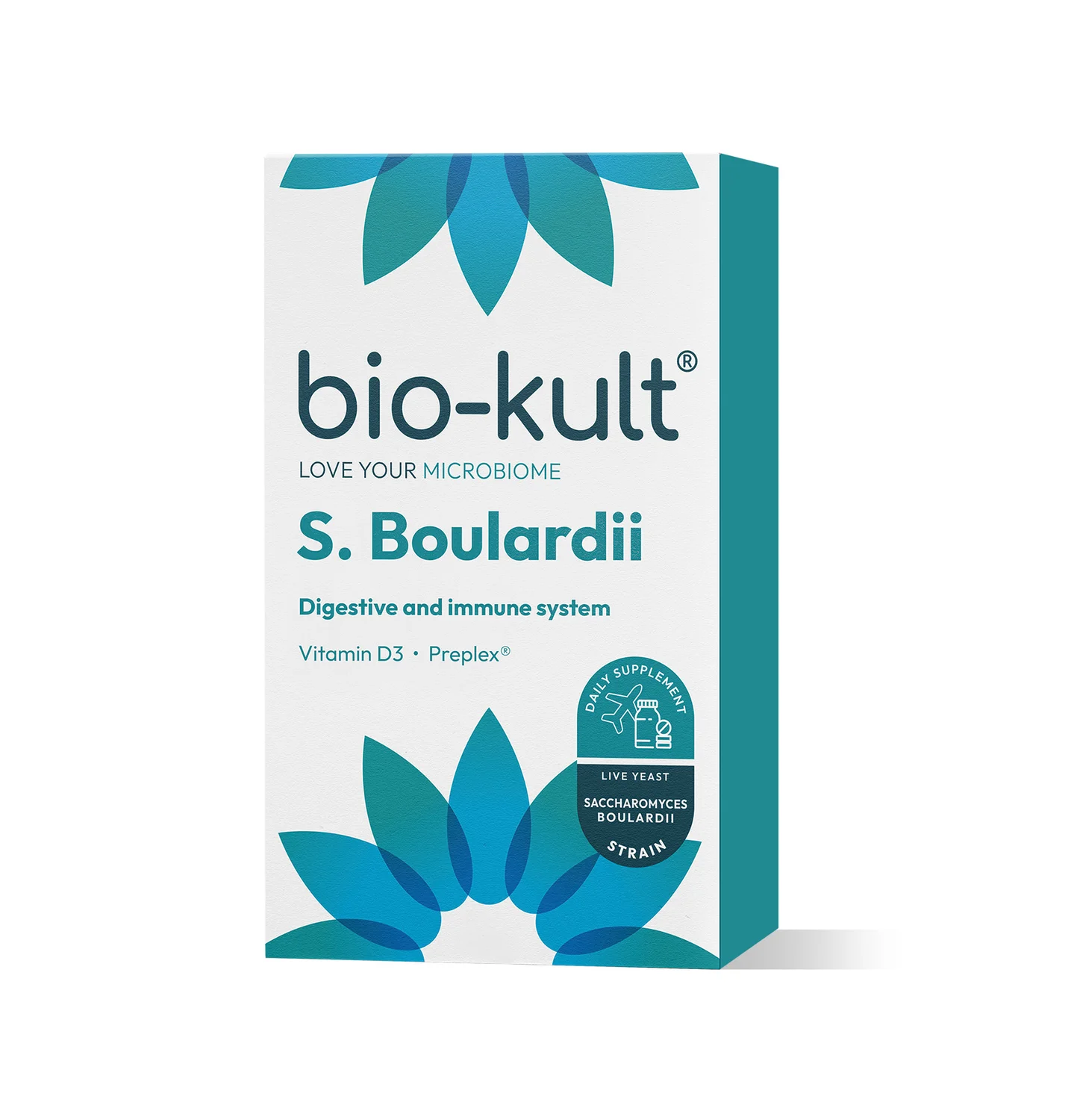 Prehransko dopolnilo vsebuje kvasovke Saccharomyces boulardii, ki so odporne na želodčno kislino. Vitamin D3 prispeva k normalnemu delovanju imunskega sistema. BIO-KULT S. BOULARDII je primeren za uporabo med potovanji ali ob jemanju antibiotikov.