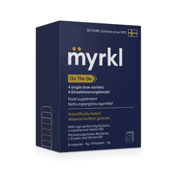Myrkl kapsule so prehransko dopolnilo, ki temelji na znanstveni formulaciji, razvitih na Švedskem. Izdelek združuje ključne sestavine, kot so fermentirani riževi otrobi, ki vsebujejo probiotike Bacillus Subtilis in Bacillus Coagulans, ter vitamin B12 in L-cistein. Ta mešanica mikrohranil je zasnovana za izboljšanje splošnega počutja, spodbujanje zdrave prebave in podporo imunskemu sistemu. Myrkl je primeren tudi za vegane in vegetarijance, saj ne vsebuje živalskih sestavin.