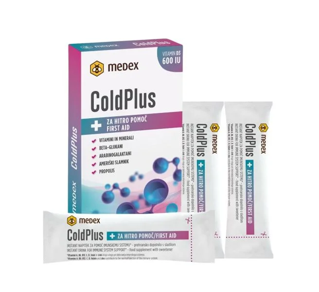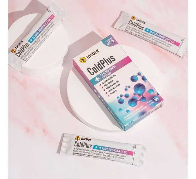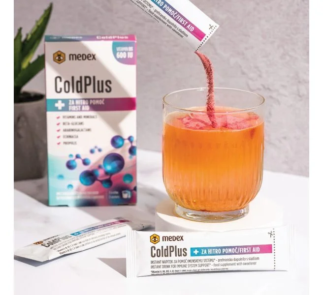 Medex Cold Plus je napitek v prahu, zasnovan za hitro podporo imunskemu sistemu v trenutkih, ko se pojavijo prvi znaki oslabljene odpornosti. Izdelek združuje naravne izvlečke ter ključne vitamine in minerale, zato pomaga telesu, da se učinkovito odzove na obremenitve imunskega sistema. Namenjen je odraslim in mladostnikom od 14. leta starosti, ki potrebujejo hitro in učinkovito podporo.