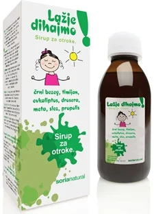 Soria Natural Lažje dihajmo! sirup za otroke je naravna podpora za dihala. Združuje edinstveno kombinacijo naravnih izvlečkov, ki pomirjajo draženje, pomagajo pri zamašenem nosu in učinkujejo na obe vrsti kašlja. Sirup ima prijeten sadni okus zaradi naravnega sadnega soka in stevije, zato ga otroci z veseljem popijejo. Namenjen je otrokom do 12. leta starosti.