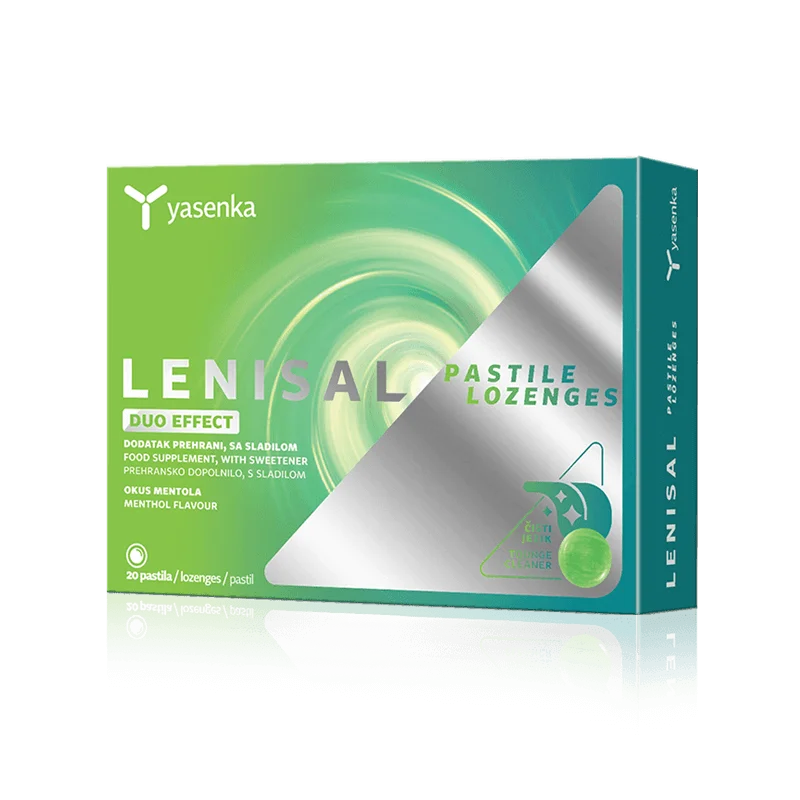 Yasenka Lenisal DUO EFFECT pastile so prehransko dopolnilo s sladilom, namenjeno čiščenju jezika ter s tem ohranjanju zdravja ustne votline in odpravljanju neprijetnega zadaha, ki se pogosto pojavi ob vnetem grlu ali prehladu. Pastile so primerne za osebe, starejše od 16. let.