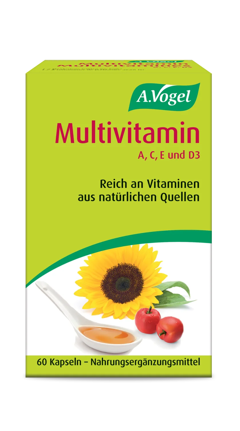 A.Vogel Multivitamin kapsule so prehransko dopolnilo, namenjeno podpori normalnega delovanja imunskega sistema, posebej v jesensko-zimskih mesecih, ko je povečana izpostavljenost virusom in prehladom.
