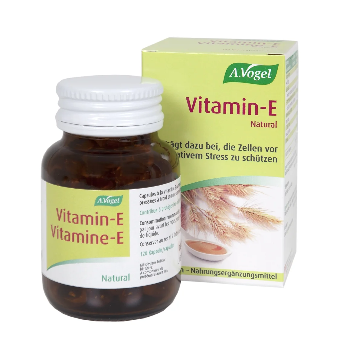 A.Vogel olje pšeničnih kalčkov v kapsulah vsebuje vitamin E, ki kot antioksidant pomaga zaščiti celice pred oksidativnim stresom.