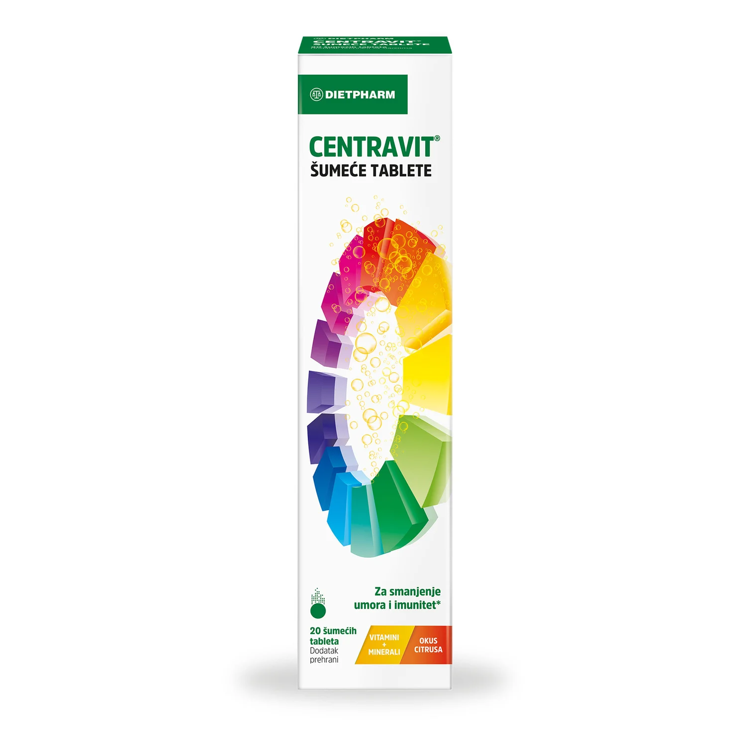 Dietpharm Centravit so šumeče tablete z okusom pomaranče in grenivke, ki vsebujejo uravnoteženo kombinacijo vitaminov in mineralov. Namenjene so vsakodnevni podpori telesu, še posebej v obdobjih povečanih psihofizičnih obremenitev.