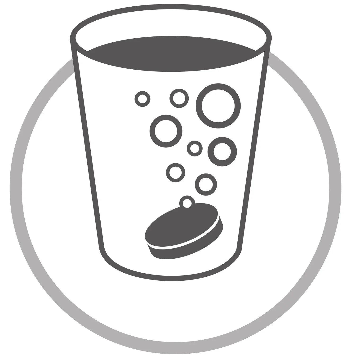 Odmerjanje: 2x dnevno raztopite 1 šumečo tableto v kozarcu vode in popijte.