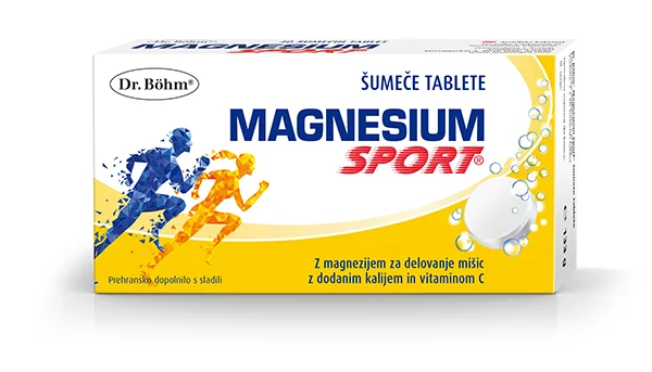 Dr. Böhm Magnesium Sport šumeče tablete so prehranski dodatek, ki vsebuje magnezij, vitamin C in kalij, ter so namenjene športnikom in tistim, ki potrebujejo podporo pri telesnih naporih. Pomagajo pri zmanjšanju utrujenosti, ohranjanju normalne funkcije mišic in živčevja ter podpirajo ravnovesje elektrolitov. Hkrati zagotavljajo oskrbo z zadostno količino tekočine, saj se hranilne snovi hitro absorbirajo in porabijo, napitek pa osvežilno odžeja. Šumeče tablete omogočajo enostavno uživanje in hitro absorpcijo. Magnezij in kalij sta v vodni raztopini v obliki citrata.