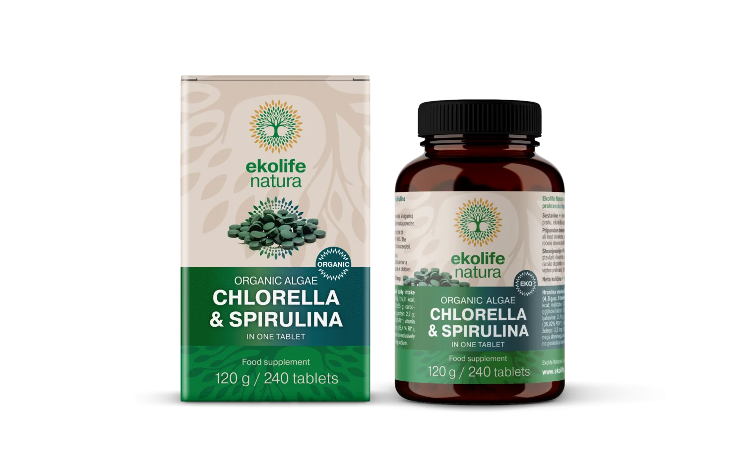 Ekolife Natura, Ekološka alga Chlorella & Spirulina, 240 tablet
