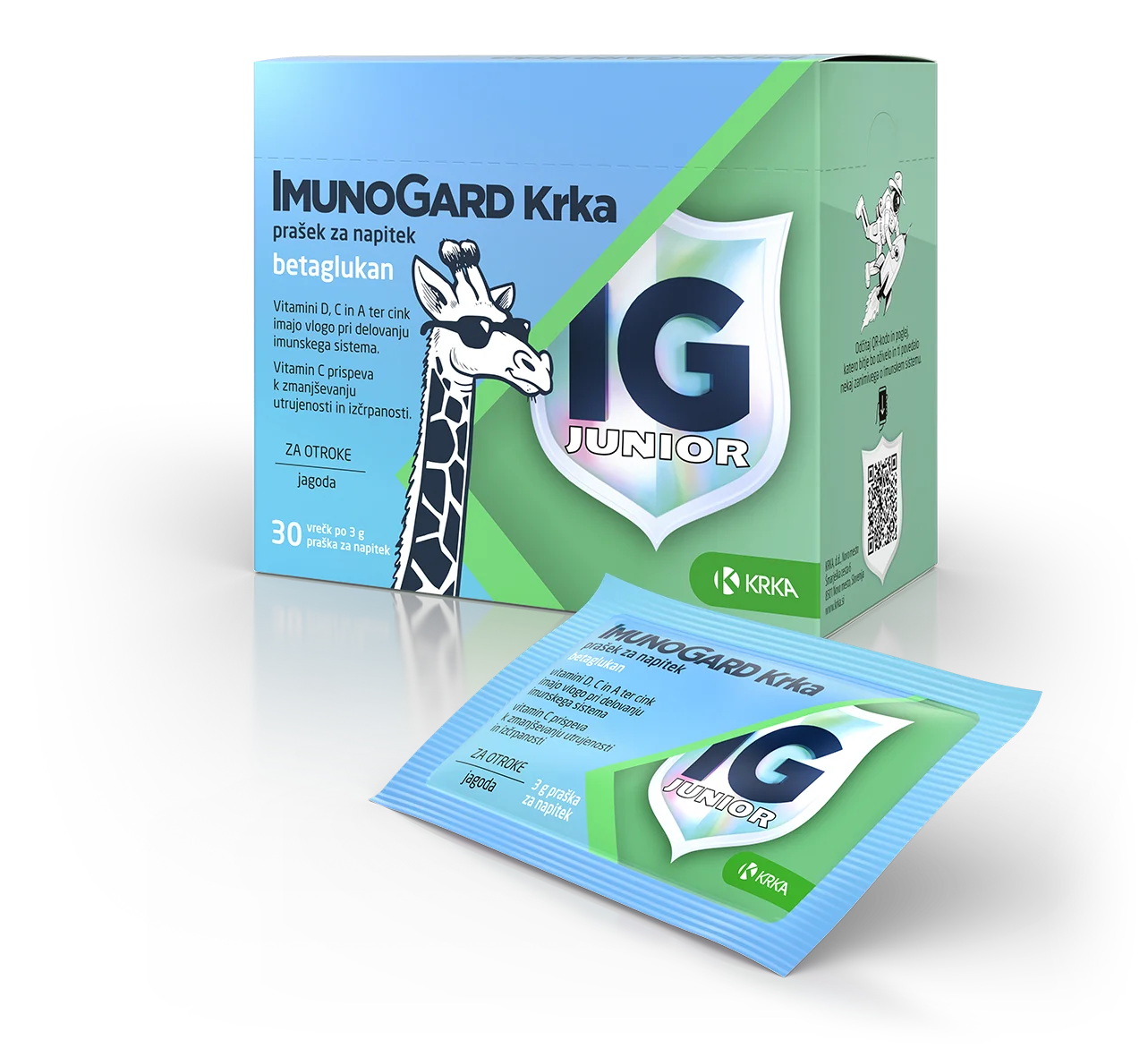 ImunoGard Krka junior je prehransko dopolnilo v obliki praška z okusom jagode, namenjeno otrokom kot podpora delovanju imunskega sistema. Vsebuje betaglukan Yestimun iz kvasovk vrste Saccharomyces cerevisiae, vitamine D3, A in C ter cink.