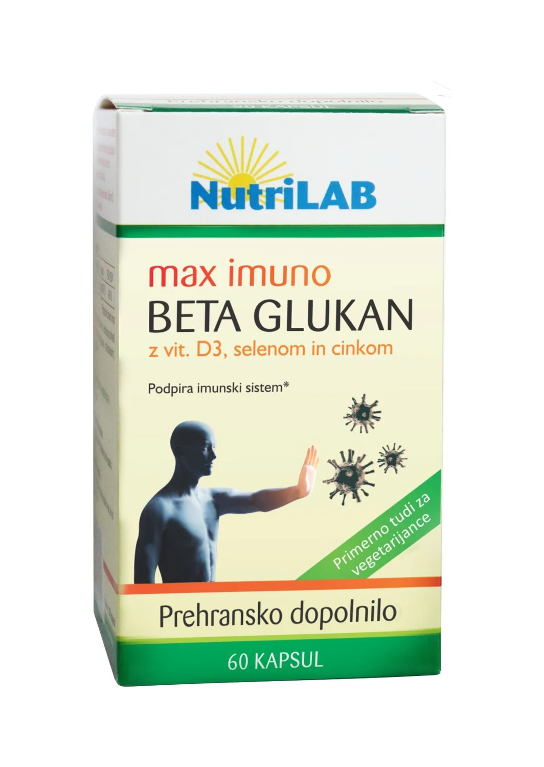 NutriLAB Max Imuno BETA GLUKAN kapsule so prehransko dopolnilo, ki vsebuje beta glukane, vitamin D3, selen in cink ter nudi maksimalno podporo imunskemu sistemu. Izdelek je primeren tudi za vegetarijance.