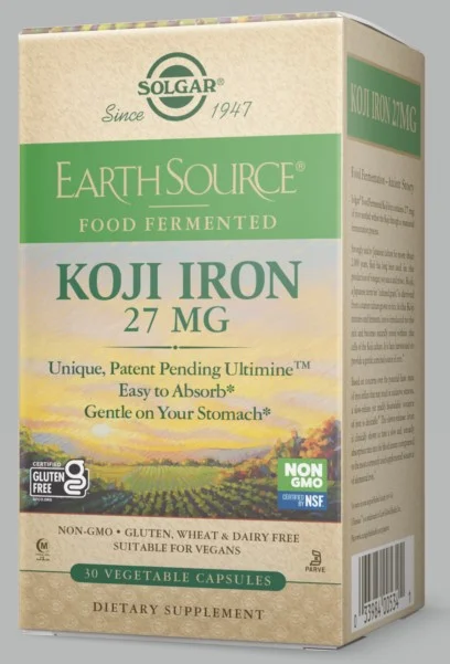 Vsak živ organizem potrebuje železo za številne pomembne funkcije. Železo ima vlogo pri procesu delitve celic, prispeva k normalnemu nastajanju rdečih krvničk in hemoglobina, normalnemu prenosu kisika v telesu, normalni presnovi pri pridobivanju energije, normalnemu delovanju imunskega sistema, normalni kognitivni funkciji, zmanjšanju utrujenosti in izčrpanosti.* Pomembno je, da vnesete zadostno količino železa. Solgar® Koji Iron vsebuje 27 mg drugačne, edinstvene, visoko biološko razpoložljive oblike železa s podaljšanim sproščanjem, pridobljene s tehnologijo Ultimine, ki uporablja Koji fermentacijo za pridobivanje visokokakovostnih mineralov. Več kot 2000 let se Koji uporablja kot tradicionalna metoda fermentacije na Japonskem. Tako delujejo kis, miso in sojina omaka. Fermentacija je naraven proces, ki ohrani in izboljša hrano. V tem procesu plesen Koji (Aspergillus oryzae) med fermentacijo absorbira in shrani železove minerale v mediju, bogatem z železom, kar ima za posledico visoko biološko razpoložljivo železo s podaljšanim sproščanjem, ki je nežno za želodec.1,2 Trajno sproščanje omogoča postopno sproščanje in absorpcijo železa čez dan.