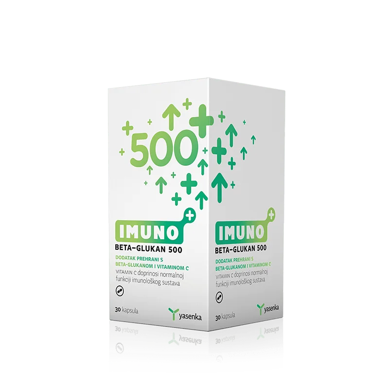 Yasenka Imuno BETA-GLUKAN 500 je prehransko dopolnilo z visoko prečiščenimi beta-(1,3/1,6)-D-glukani, izoliranimi iz celične stene kvasovk Saccharomyces cerevisiae, ter z dodatkom priporočenega dnevnega odmerka vitamina C. Namenjeno je podpori imunskega sistema in splošnemu dobremu počutju organizma.
