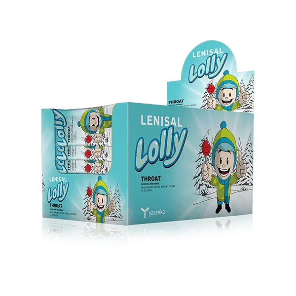 Yasenka Lenisal LOLLY Throat je prehransko dopolnilo v obliki lizike, namenjeno podpori normalnega delovanja imunskega sistema in pomirjanju razdražene sluznice grla ter dihalnih poti. Lizika ima prijeten okus po malini, črnemu ribezu in češnji.