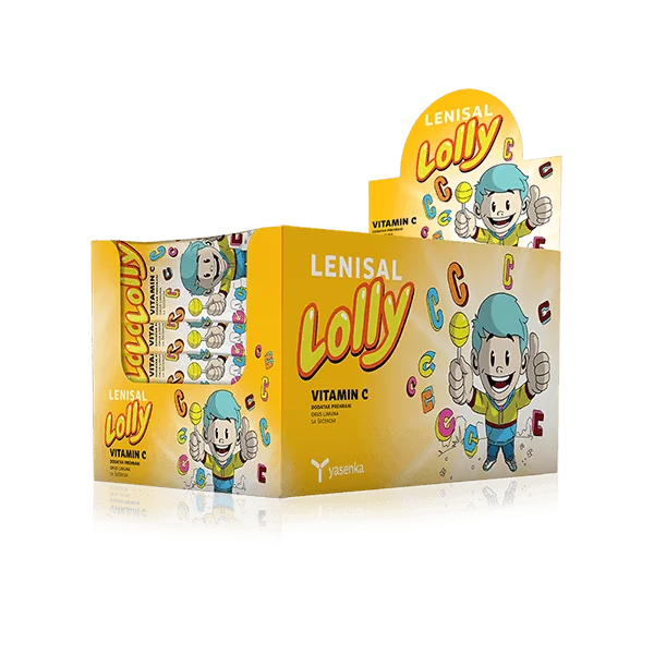 Yasenka Lenisal LOLLY Vitamin C je prehransko dopolnilo v obliki lizike, namenjeno podpori imunskega sistema, rasti in razvoju otrok ter ohranjanju zdravja dlesni, zob, kosti in kože. Lizika ima prijeten okus po limoni.
