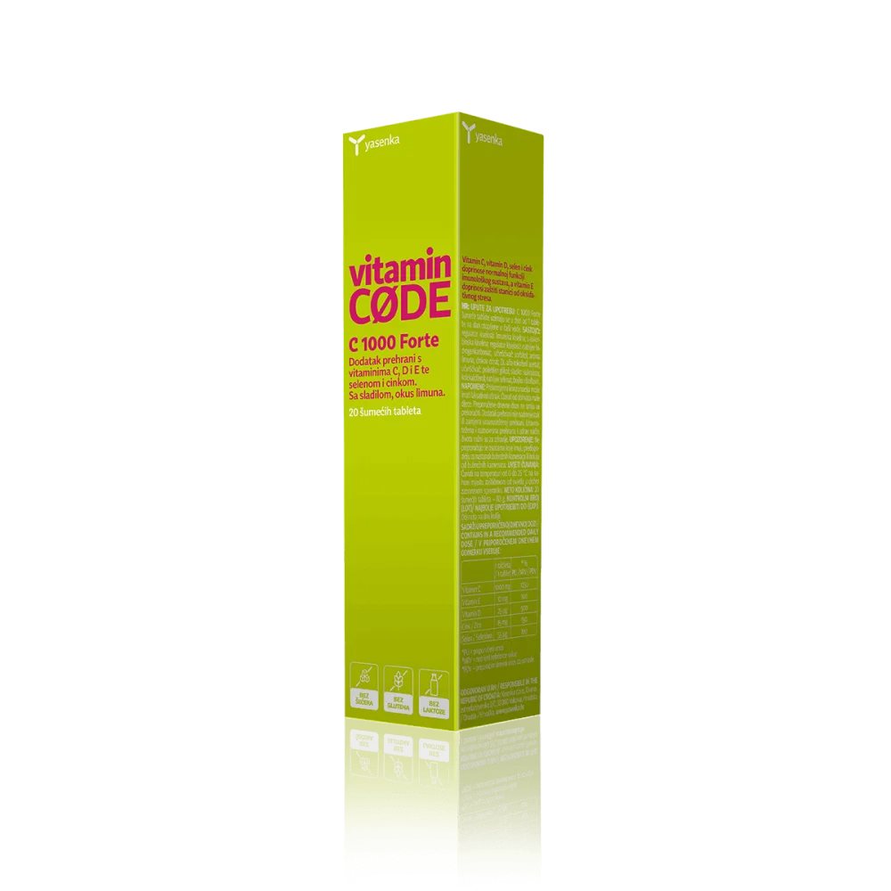 Yasenka Vitamin Code C 1000 Forte šumeče tablete so prehransko dopolnilo, namenjeno učinkoviti podpori imunskemu sistemu.