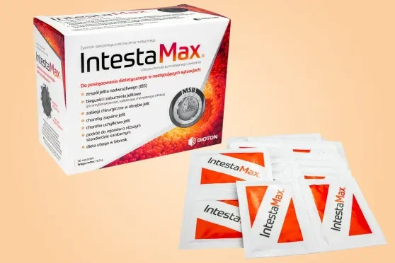 Intesta Max je živilo za posebne zdravstvene namene, namenjeno podpori črevesju pri sindromu razdražljivega črevesja, funkcionalnih motnjah črevesja, driski, črevesnih motnjah po antibiotični terapiji, radioterapiji, kemoterapiji, vnetnih črevesnih boleznih, divertikulitisu, po kirurških posegih ter pri dieti z omejenim vnosom vlaknin.