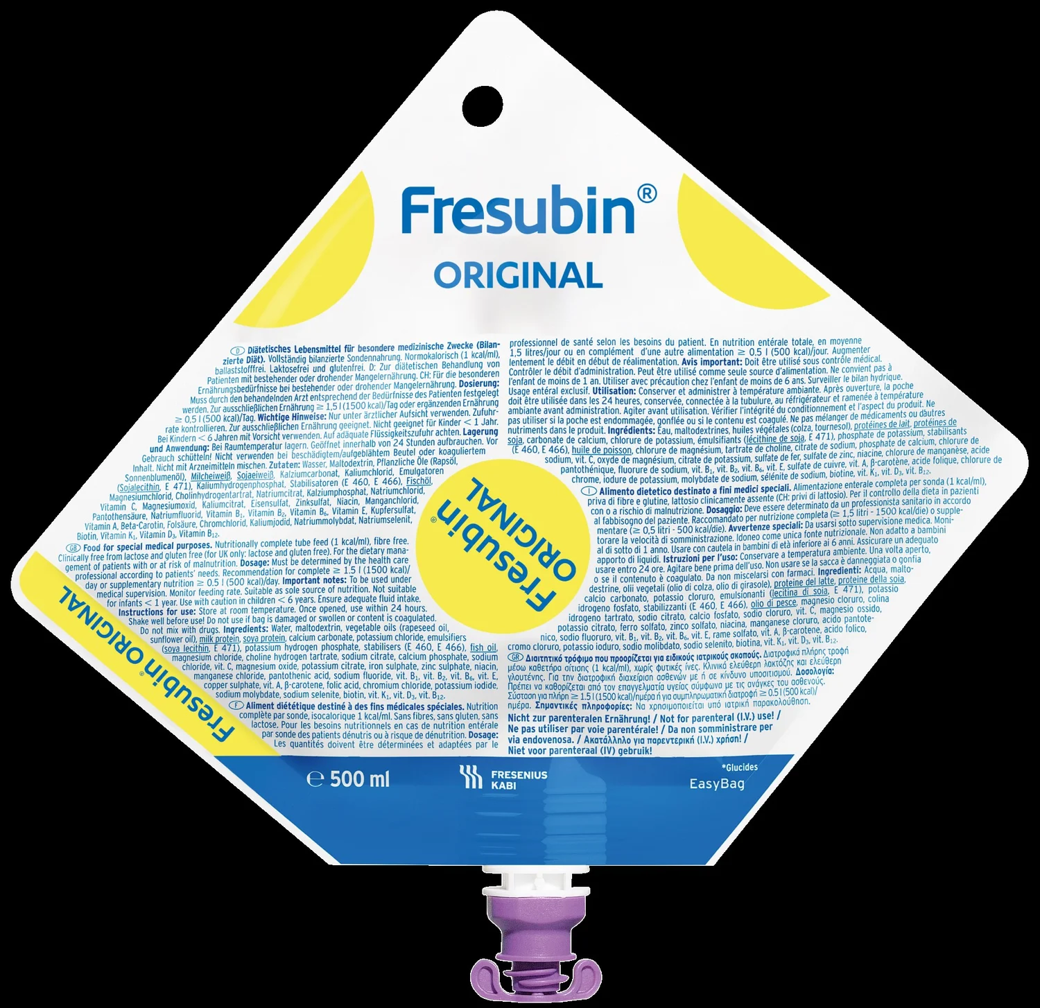 Fresubin Original je prehransko popolna, normokalorična (1,0 kcal/ml) tekoča hrana za posebne zdravstvene namene, namenjena uporabi po sondi. Uporablja se za dietetsko uravnavanje prehrane pri bolnikih z obstoječo ali grozečo podhranjenostjo ter pri bolnikih z motnjami hranjenja. Izdelek ne vsebuje vlaknin, je brez glutena in laktoze ter vsebuje ribje olje.