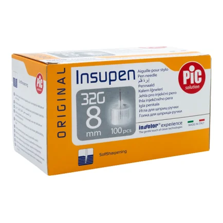 PiC igla Insupen G32 8 mm je sterilna injekcijska igla za enkratno uporabo, namenjena vbrizgavanju inzulina in združljiva z večino injektorjev. Trojno zbrušena igla s silikonsko prevleko omogoča lažje injiciranje, skoraj brez bolečin. Tanek profil sten zagotavlja boljši pretok inzulina. Igle ne vsebujejo pirogenov in niso strupene.