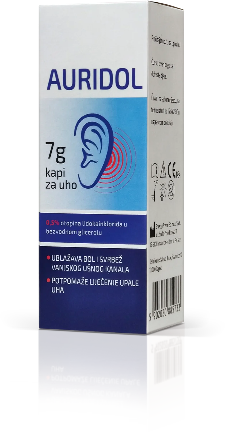 Auridol je medicinski pripomoček v obliki kapljic za uho, namenjen kratkotrajni pomoči pri neugodju v zunanjem delu ušesa. Primeren je za odrasle in otroke, starejše od 6 mesecev.