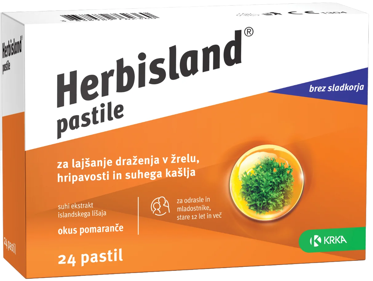 Herbisland pastile so tradicionalni rastlinski izdelek, ki vsebujejo ekstrakt islandskega lišaja in so namenjene lajšanju draženja sluznice žrela in ustne votline ter s tem povezanega suhega kašlja. Namenjene so odraslim in mladostnikom od 12. leta dalje. Pastile imajo okus po pomaranči, barvo pa jim daje naravno barvilo kurkumino olje. Ne vsebujejo sladkorja, laktoze in glutena ter so primerne tudi za vegane.