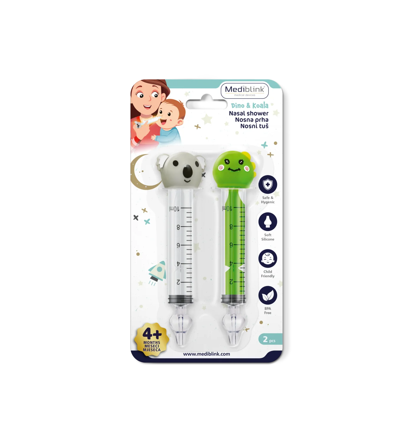 Mediblink nosna prha je pripomoček za nežno in učinkovito izpiranje nosu. Primerna je za otroke od 4. meseca starosti naprej ter za odrasle, in omogoča varno ter higienično čiščenje nosu.