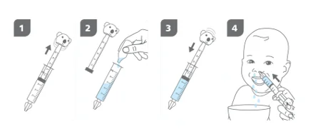 Odprite embalažo, vzemite brizgo in mehke silikonske nastavke, v brizgo natočite fiziološko raztopino in namestite mehke silikonske nastavke. V nosno votlino vstavite nastavek iz mehkega silikona, nagnite glavo rahlo naprej, odprite usta in potisnite fiziološko raztopino. Po izpiranju z robčkom obrišite razlito tekočino.