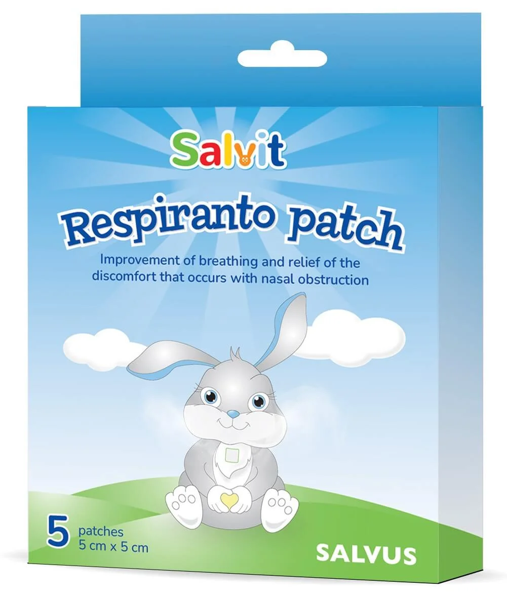 Salvit Respiranto obliž je medicinski pripomoček za izboljšanje dihanja in lajšanje neugodja pri nosni obstrukciji. Namenjen je otrokom, starejšim od 2,5 let, in odraslim. Obliž se nanese neposredno na oblačila v predelu prsnega koša, deluje do 8 ur ter je primeren za uporabo tudi ponoči. Izdelek je za enkratno in zunanjo uporabo ter vsebuje naravne sestavine.