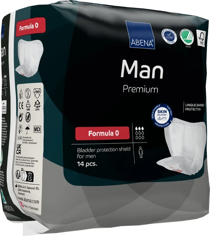 Abena Man Premium Formula 0 so anatomsko oblikovane in zanesljive zaščitne predloge za moške, namenjene uporabnikom z manjšimi težavami z nehotenim uhajanjem urina. Predloge se enostavno pritrdijo na spodnje perilo s samolepilnim trakom in so zasnovane za optimalno udobje ter diskretnost. Zračne in mehke, nudijo učinkovito zaščito pred iztekanjem. Predloge so dermatološko testirane.