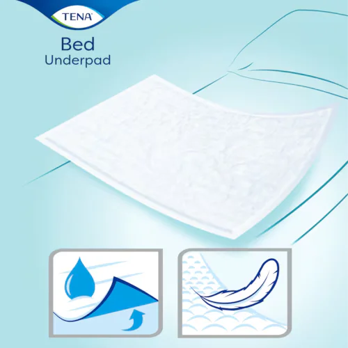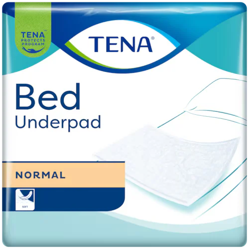 TENA Bed Normal je posteljna podloga za odrasle, namenjena zaščiti postelj, stolov, kavčev in drugih površin pred uhajanjem urina. Ima mehko površino, vpojno jedro in nepropustni spodnji sloj, ki zagotavljajo hitro vpijanje tekočine in varnost površin.
