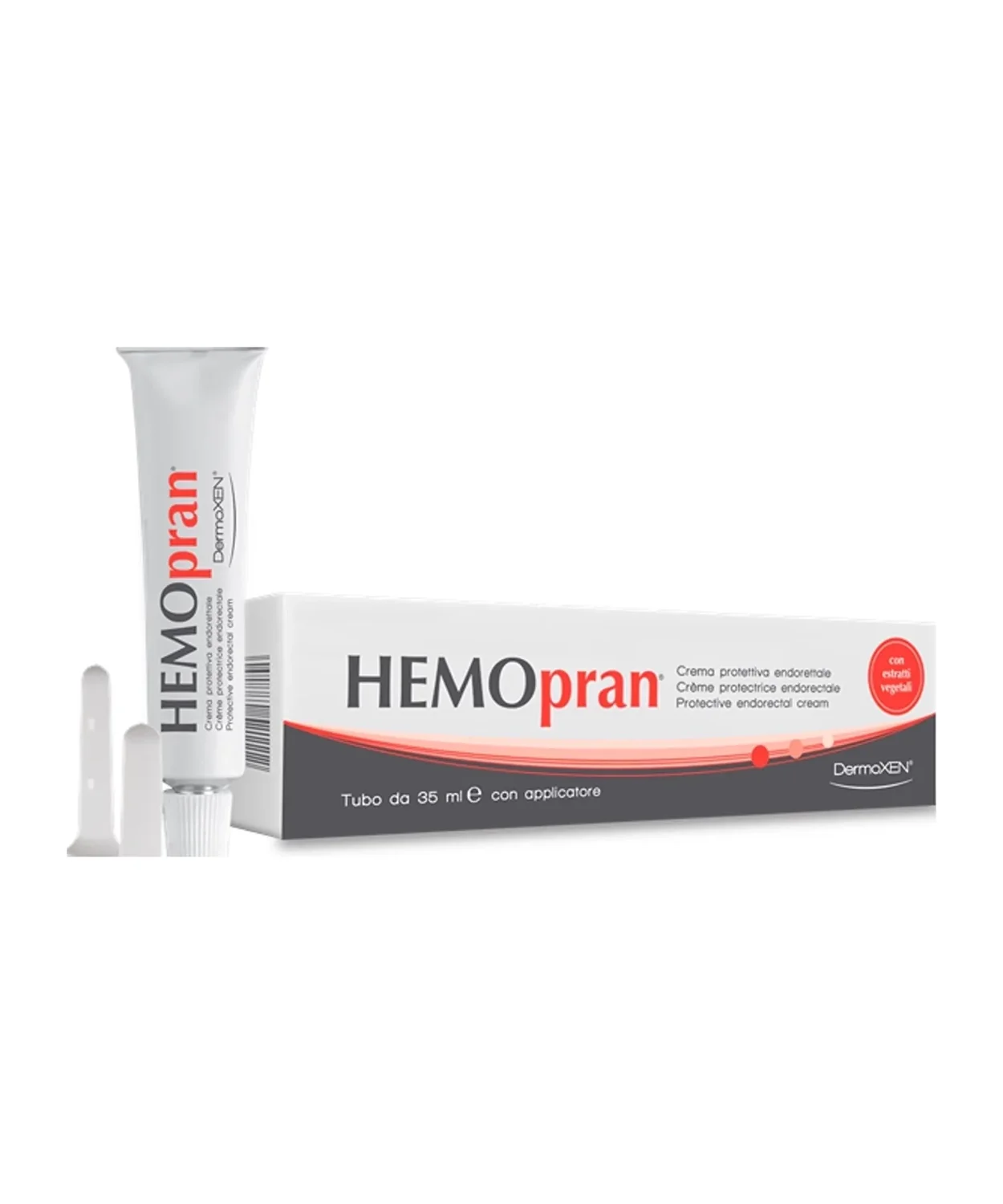 Hemopran zaščitna endorektalna krema je formulirana z glikolnimi ekstrakti divjega kostanja, nepozebnika in bodeče lobodike, z gelom aloe vere, avenantramidom biotehnološkega izvora ter z jojoba oljem. Poleg tega vsebuje: Ceteareth-20, Cetyl Esters, Phenoxyethanol, Isopropyl Myristate, Stearic Acid, C12-20 Acid PEG-8 Ester, Menthyl lactate, Carbomer, Glyceryl Stearate SE, Triethanolamine, voda.