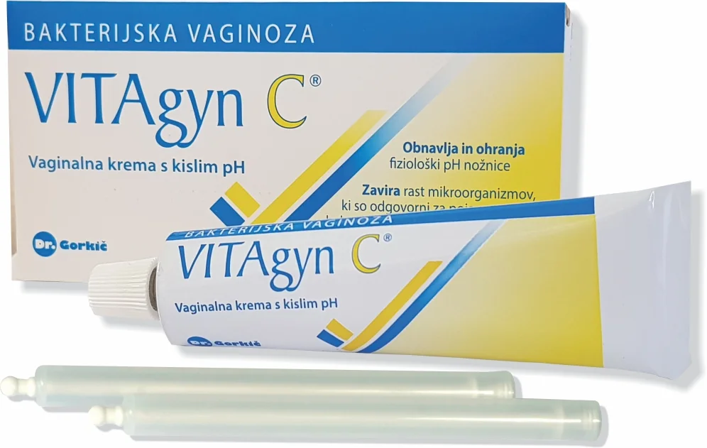 Vitagyn C je vaginalna krema, ki vsebuje sestavine, kot so vitamin C, mlečna kislina, srebro in maltodekstrin, ki skupaj delujejo proti bakterijam, glivicam in pomagajo obnavljati naravno pH ravnovesje nožnice. Krema je zasnovana za zdravljenje in preprečevanje ponavljajočih se okužb, kot je bakterijska vaginoza, ki je pogosto povezana s težavami, kot so nožnični izcedek in okužbe sečil. Primerna je za uporabo tudi v času nosečnosti, saj obnavlja in vzdržuje fiziološko kislost nožnice ter pomaga pri razvoju naravne laktobakterijske flore.