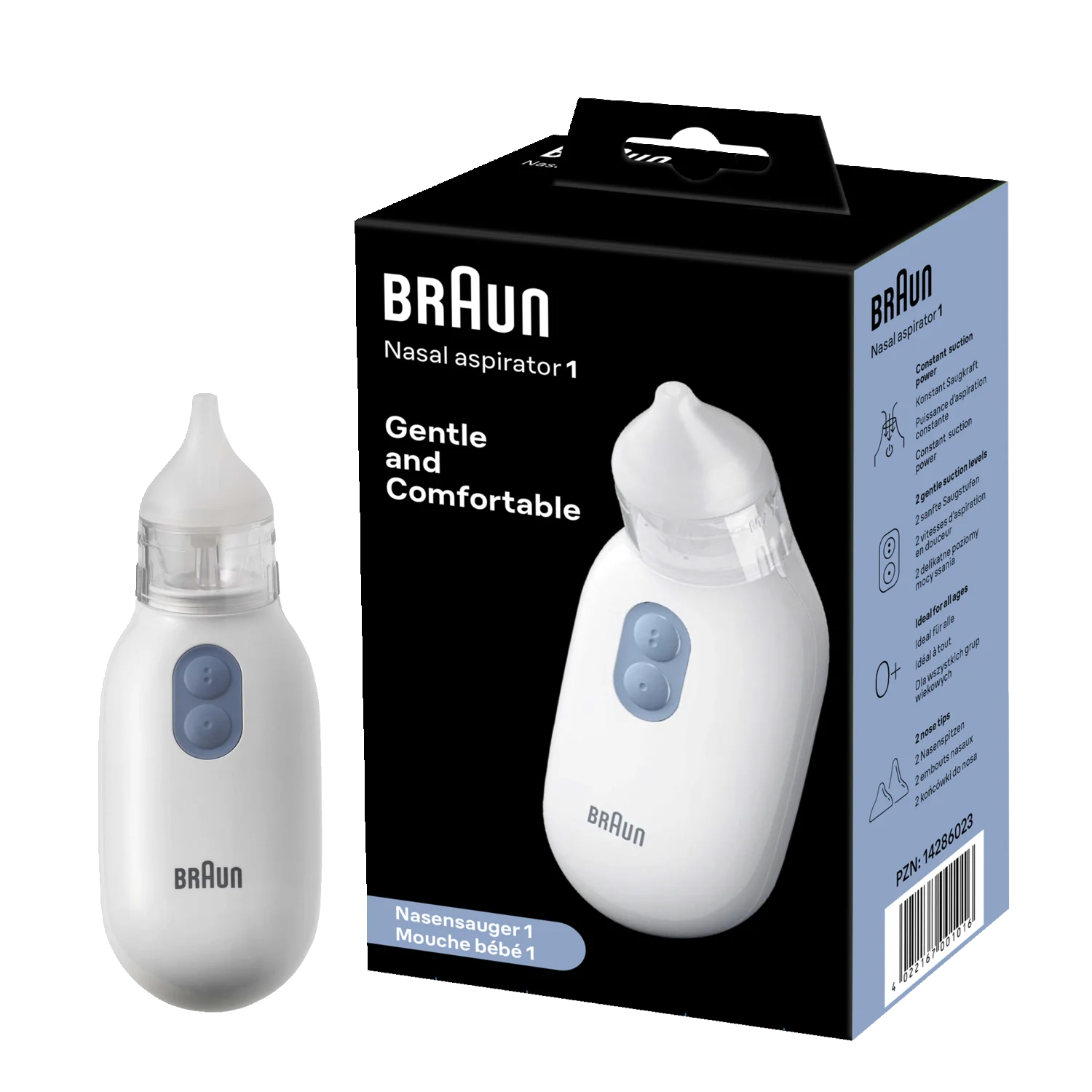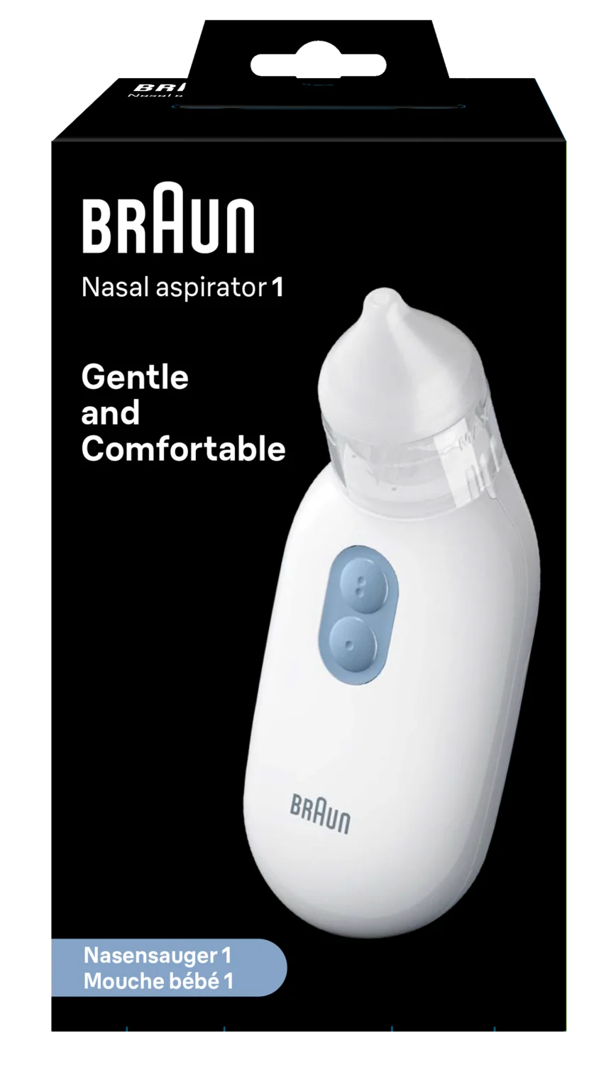 Braun nosni aspirator BNA100 je pripomoček, ki hitro in nežno očisti otrokov zamašen nosek.