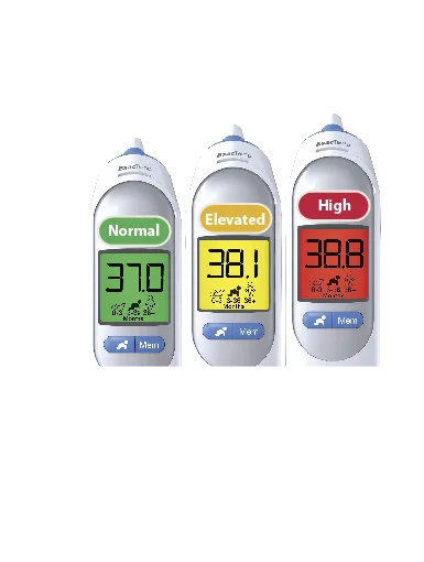 Prosimo, posvetujte se z zdravnikom, če opazite simptome, kot so nepojasnjena razdražljivost, bruhanje, driska, dehidracija, spremembe teka ali aktivnosti, krči, bolečina v mišicah, tresavica, otrdelost vratu, bolečine pri uriniranju itd., ne glede na barvo osvetlitve ozadja ali odsotnost vročine. Prosimo, posvetujte se z zdravnikom, če termometer kaže povišano temperaturo (rumena ali rdeča osvetlitev ozadja pri termometru IRT 6520).