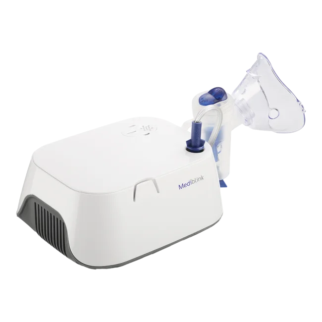 Mediblink Compact M440 je zmogljiv in tih kompresorski inhalator, namenjen celotni družini – od novorojenčkov do odraslih. Omogoča učinkovito zdravljenje in lajšanje bolezni spodnjih in zgornjih dihalnih poti. V kompletu so priložene maske za otroke in odrasle, ustni nastavek, 2-stopenjska posodica za fiziološko raztopino, cev dolžine 1,5 m ter 5 rezervnih filtrov.