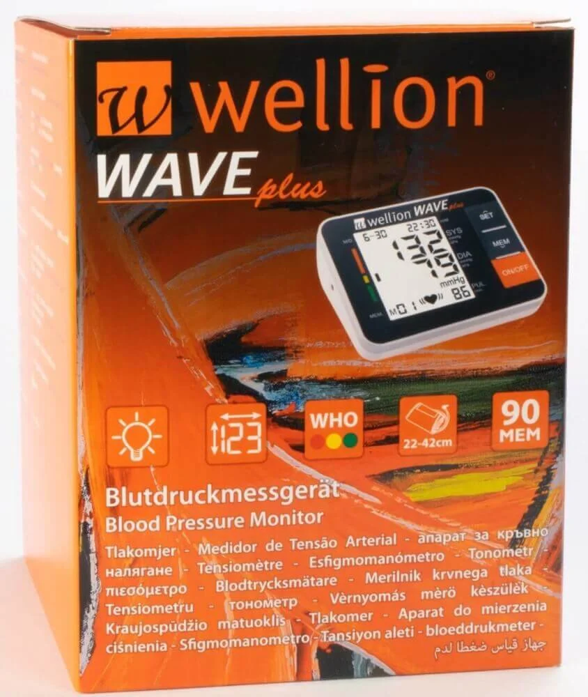 Wellion Wave Plus je nadlahtni digitalni merilnik krvnega tlaka za domačo uporabo, zasnovan za enostavno, natančno in hitro merjenje sistoličnega in diastoličnega krvnega tlaka ter srčnega utripa. Z velikim osvetljenim zaslonom in barvno označenimi rezultati po merilih Svetovne zdravstvene organizacije omogoča jasen prikaz izmerjenih vrednosti. Manšeta univerzalne velikosti je primerna za večino uporabnikov.