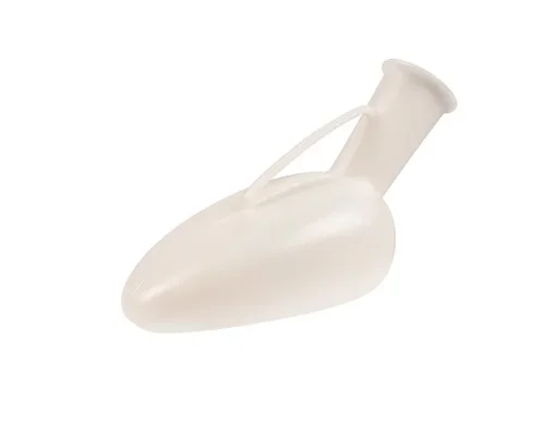 Urinska račka brez pokrova je medicinski pripomoček za zbiranje urina pri moških bolnikih z omejeno gibljivostjo, pooperativnimi stanji, nevrološkimi obolenji ali drugimi zdravstvenimi težavami, ki preprečujejo samostojno uporabo sanitarij. Namenjena je uporabi v bolnišnicah, domovih za starejše, zdravstvenih ustanovah ter pri domači negi. Račka omogoča higiensko, varno in nadzorovano zbiranje urina, kar prispeva k udobju bolnika in spremljanju diureze. Podolgovata oblika z okroglo odprtino zagotavlja pravilno namestitev in zmanjšuje tveganje razlitja, medtem ko ergonomski ročaj omogoča enostavno rokovanje tako za bolnika kot za zdravstveno osebje. Izdelana je iz visokokakovostne plastike, ki je odporna na mehanske obremenitve in primerna za večkratno uporabo ter omogoča učinkovito čiščenje in razkuževanje po higienskih standardih.