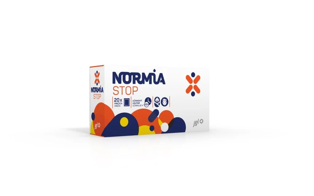 Normia STOP vrečke so medicinski pripomoček, namenjen lajšanju težav, povezanih z drisko. Pomagajo pri simptomih, kot sta napenjanje v trebuhu in pogosto odvajanje blata. Obenem prispevajo k obnovi naravne fiziološke funkcije črevesne sluznice. Učinek se pokaže v 12 urah.