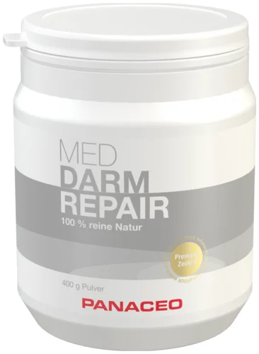 Panaceo Med Darm Repair v prahu je naravni medicinski pripomoček z PMA zeolitom. Namenjen je podpiranju zdravja črevesne sluznice in selektivnemu vezanju težkih kovin in amonija ter njihovemu izločanju iz telesa. Temelji na naravnem zeolitnem klinoptilolitu, ki je optimiziran z mikroaktivacijo PMA - Panaceo, kar izboljša biološke lastnosti učinkovine. Nenehen nadzor proizvodnega procesa zagotavlja visoko kakovost in učinkovitost izdelka, skladno z evropsko smernico 93/42/EGS za medicinske pripomočke.