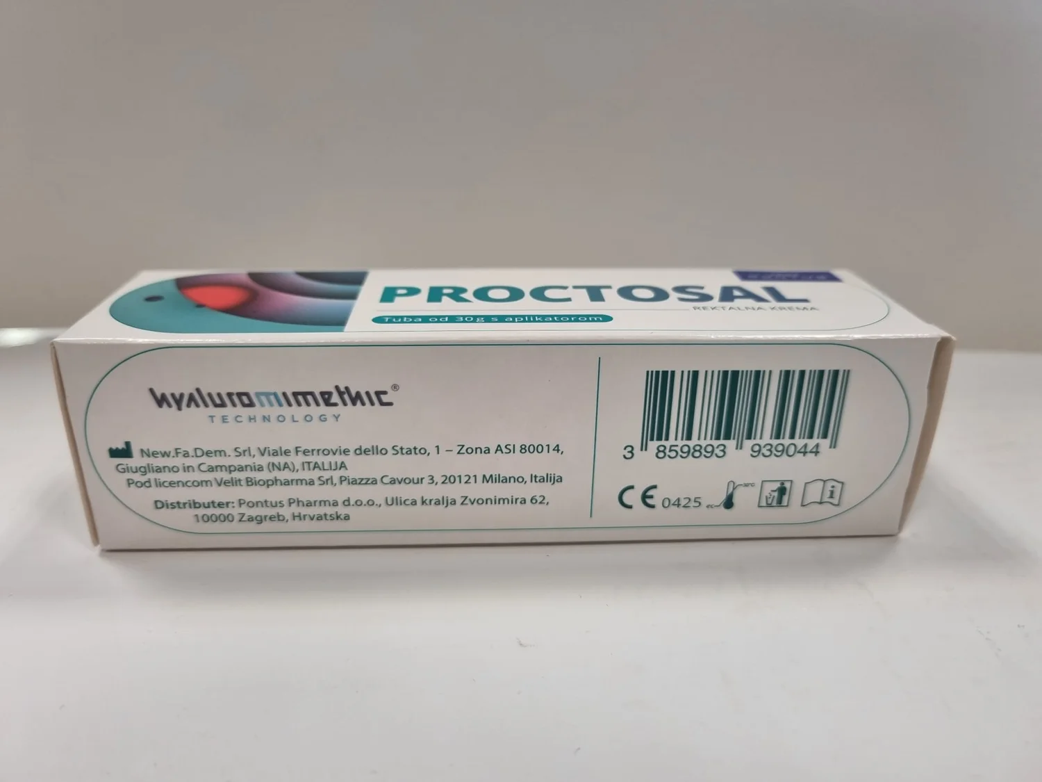 Proctosal rektalna krema je medicinski pripomoček z natrijevim hialuronatom butiratom in dimetikonom, ki tvori zaščitni film in deluje kot mazivo.