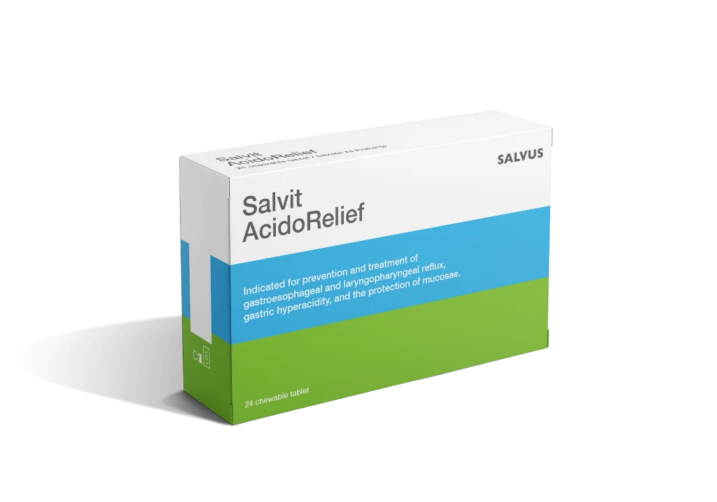 Salvit AcidoRelief žvečljive tablete so medicinski pripomoček, namenjen lajšanju simptomov, povezanih z gastroezofagealnim refluksom, laringofaringealnim refluksom ter hiperacidnostjo želodčne vsebine. Pomagajo zmanjšati občutek zgage, pekoč občutek za prsnico ter draženje sluznice požiralnika. Formulacija temelji na kombinaciji alginata, antacidov in rastlinskega ekstrakta z zaščitnim delovanjem na sluznico želodca. Primerne so za odrasle in otroke od 6. leta starosti.