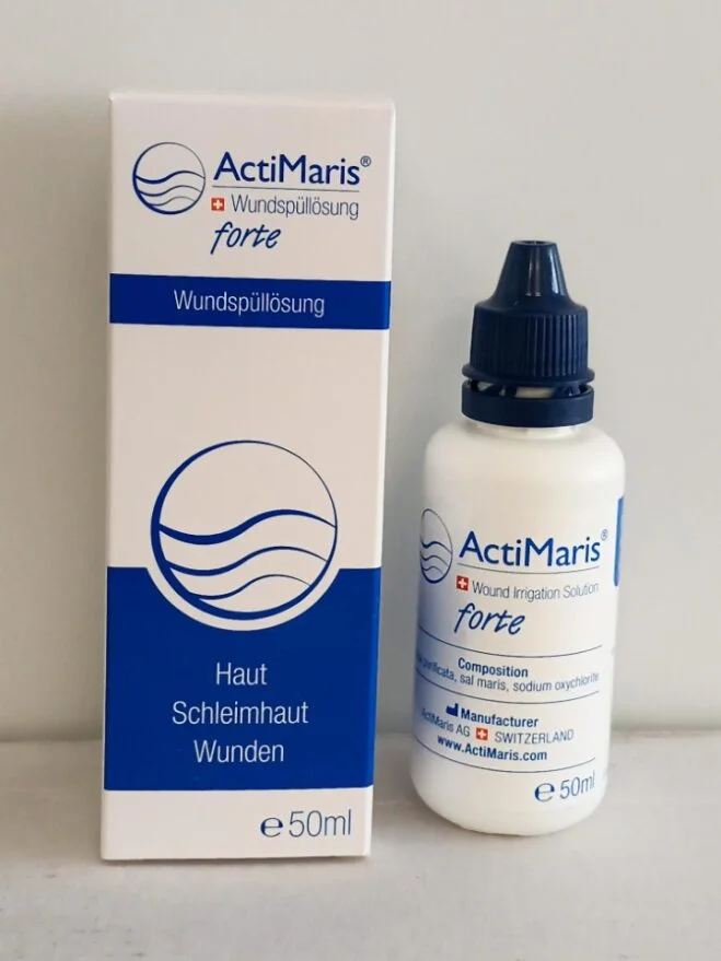 Za učinkovito čiščenje ran in sluznice nanesite ActiMaris forte raztopino neposredno na rano ali z njo prepojite gazo ter jo položite na poškodovano območje. Raztopino pustite delovati 5 minut. Postopek lahko ponovite večkrat na dan, odvisno od resnosti in vrste rane. V primeru močno okuženih ali vnetih ran je priporočljivo zdravljenje od 5 do 10 minut. Po začetni fazi zdravljenja se lahko preide na manj koncentrirane raztopine ActiMaris, kot je ActiMaris sensitiv. Pred uporabo je priporočljivo, da se zelo boleče rane ogrejejo na telesno temperaturo, saj to zmanjša nelagodje med uporabo.