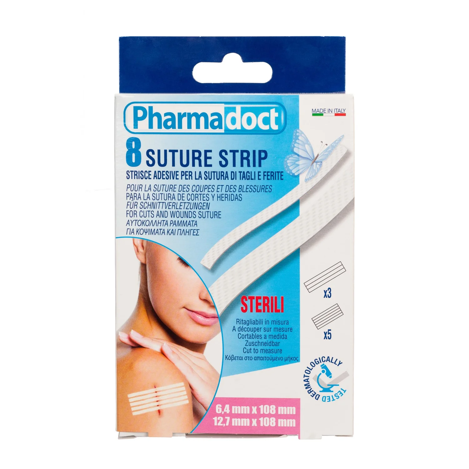 Pharmadoct sterilen trak za zapiranje ran je posebno zasnovan obliž za rane srednje velikosti, ki daje videz nadomestka za šive. Uporaba tega "šiv obliža" pomaga preprečiti dodatno širjenje rane in omogoča hitrejše naravno celjenje. Trak za zapiranje ran nudi zaščito in stabilizacijo rane, kar prispeva k njenemu hitrejšemu celjenju. Traki so sterilni in dermatološko testirani.