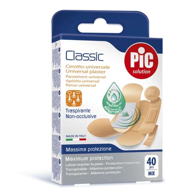 PiC Classic antibakterijski obliži MIX različnih velikosti so namenjeni zaščiti ran, odrgnin in ureznin. So izjemno elastični, vodoodporni in narejeni iz polietilena, ki preko celotne površine vsebuje 3-dimenzionalne pore, ki poskrbijo za maksimalen prehod zraka do rane in izhod vlage od rane, hkrati pa varujejo rano pred nečistočami. S tem ohranjajo rano suho ter čisto.